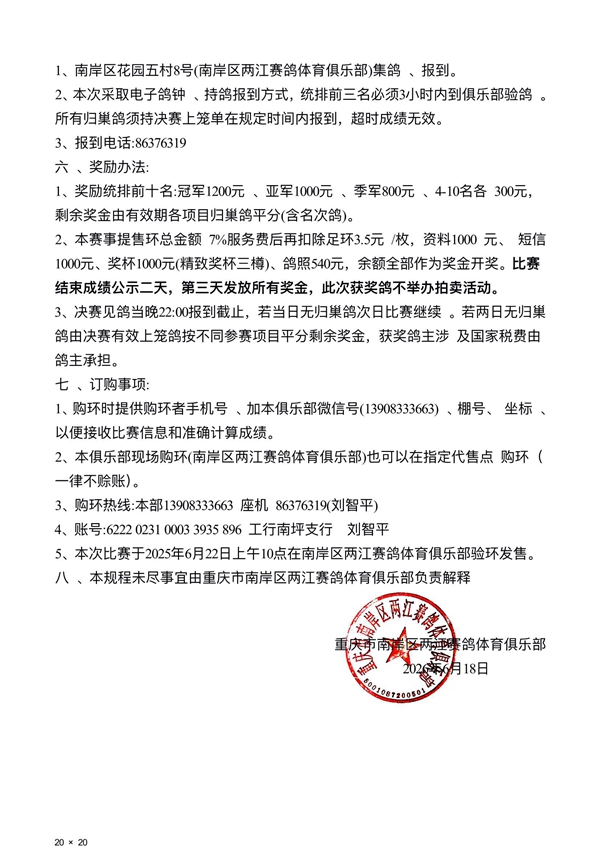 两江赛鸽2026年620宁强特比环赛规程