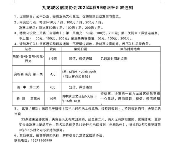 九龙坡区鸽会2025年99略阳杯售环数据明细请点击