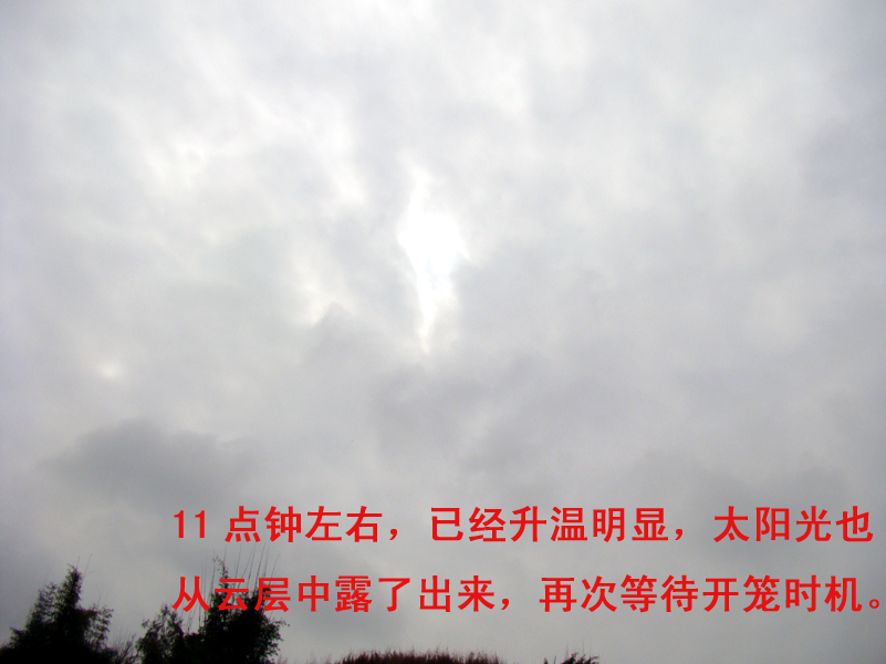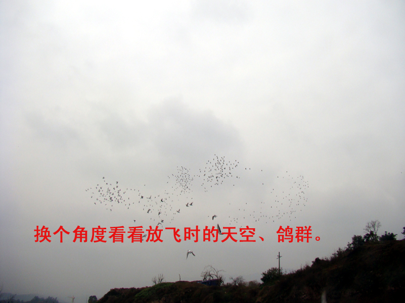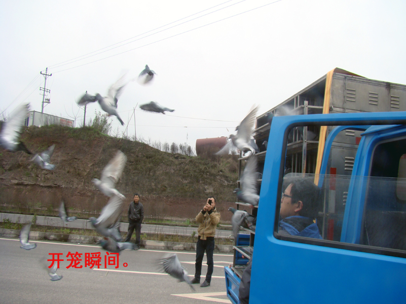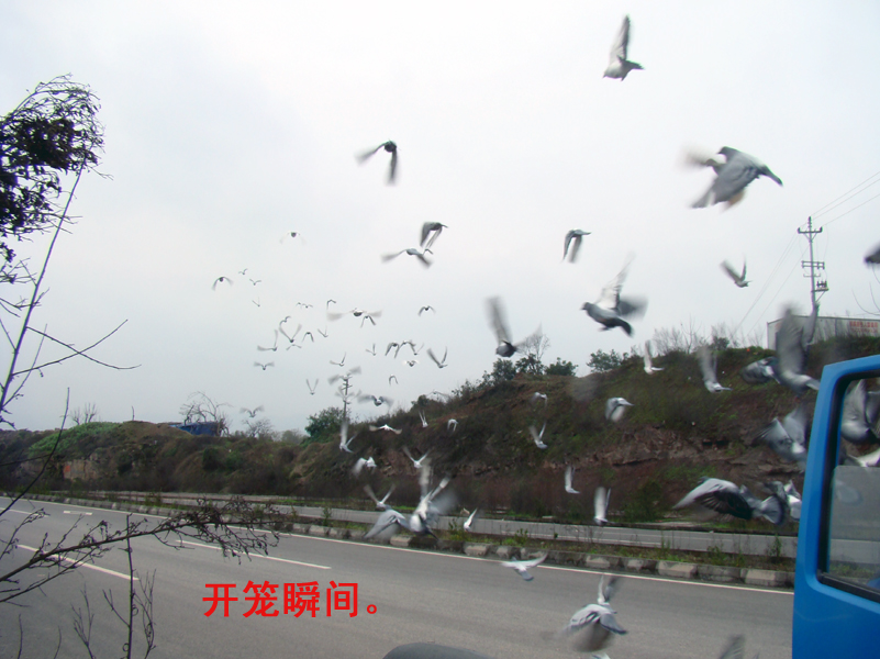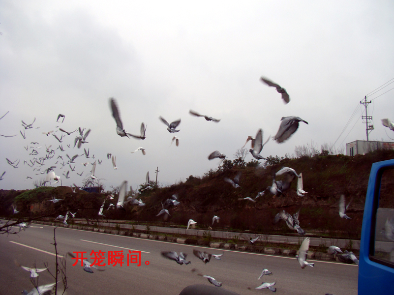 4日早上8点钟准时从人和出发,不到9点到达蔡家训放地,先期到达的还有民丰赛鸽车,于是商定,民丰先放,两江随后开笼,结果民丰放完鸽子走得差不多的时候,天空中又出现几大群约1000多只赛鸽,于是决定再等等,最后等到11点10分的时候开笼。开笼后,鸽子略做盘旋,径直向南飞走。