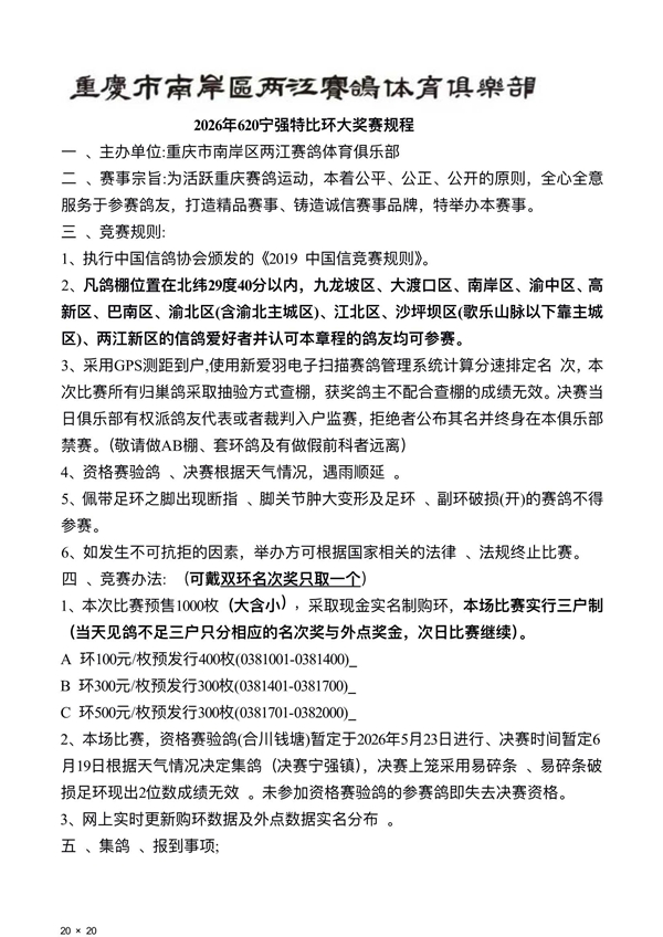 渝中区鸽协2014秋季宁强特比环资格赛集鸽数据