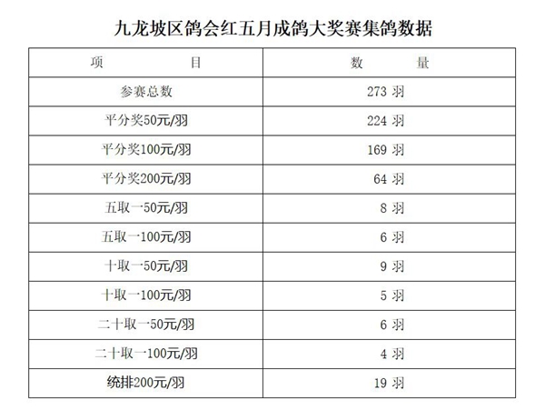九龙坡区鸽会2025年红五月成鸽赛集鸽数据、点鸽明细
